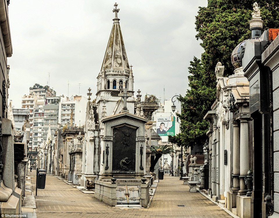 Nghĩa trang La Recoleta ở thủ đô Buenos Aires, Argentina được đánh giá là một trong những địa điểm đẹp nhất trên thế giới. Một trong những ngôi mộ nổi tiếng nhất tại đây là mộ phần của Eva Peron, người vợ thứ hai của cố Tổng thống Argentina Juan Peron. (Ảnh: news.zing.vn)